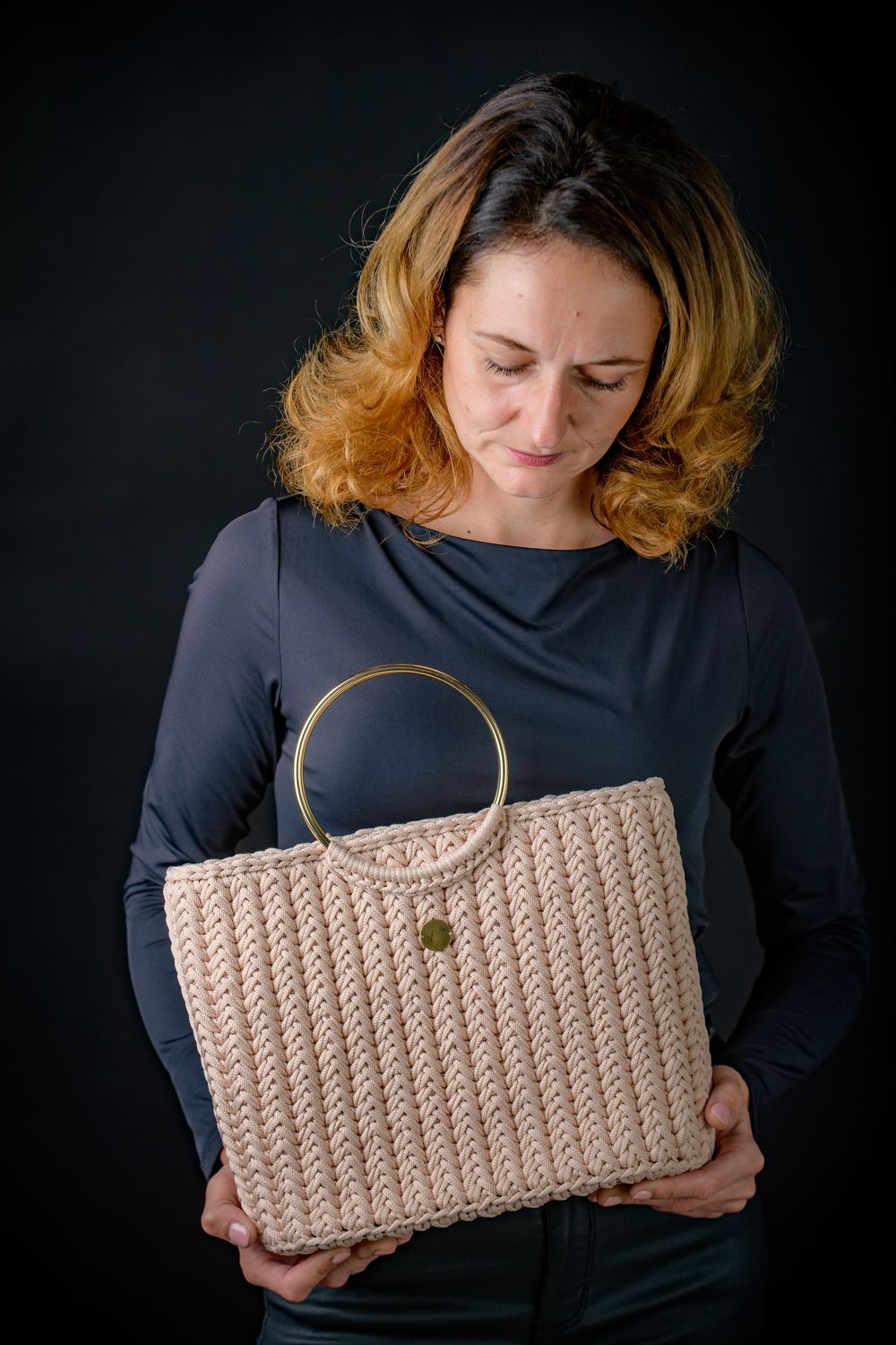 Unikatna lepotica v puder roza barvi, kombinirana s kovinskimi dodatki v zlati barvi.